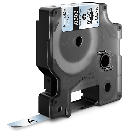 Dymo Rhino Tape Polyester 9 mm Sort på Klar 5,5 m